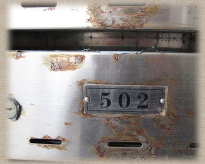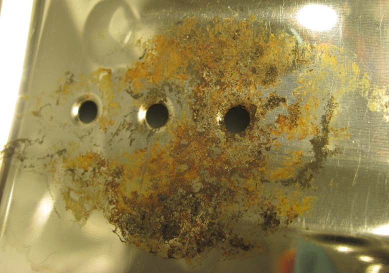 2.不銹鋼表面粘附有機物汁液(如瓜菜、面湯、痰等),在有水氧情況下,構(gòu)成有機酸,長時間則有機酸對金屬表面的腐蝕。